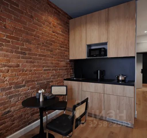 Функциональная кухня, оснащённая краном со встроенным фильтром для питьевой воды, холодильником с морозильной камерой, индукционной плитой, СВЧ-печью, электрическим чайником, посудой, столовыми и кухонными принадлежностями, а также бытовой химией.