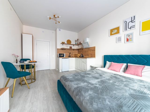В уютной студии вы найдете для вашего комфортного проживания: wi-fi, SМАRТ ТV, посуда, комплект чистого постельного белья и полотенец, фен, утюг, стиральная машина, микроволновая печь, холодильник, варочная панель, гладильная доска, сушилка.