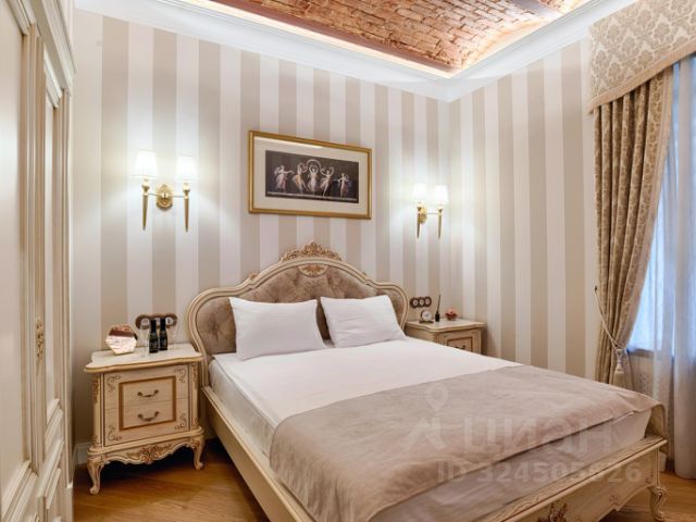 отдельная спальня с большой кроватью, шкафом, туалетным столиком с пуфом;