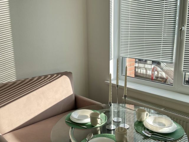 6 этаж. Плoщaдь студии 23,5 м. кв + балкон 5,1 м кв. Квартира чистая, ухоженная, уютная, светлая, оборудована всем необходимым для проживания. Достойный ремонт, теплый пол в санузле. Есть полноценный раскладной диван на 2 персоны с пенополиуретановым матрасом высокой плотности. Шкаф, комод. Хороший кухонный гарнитур, микроволновая печь, холодильник. Стиральная машина размещается в санузле. Широкий просторный застекленный балкон с зоной отдыха. Есть роутер, интернет подключен.