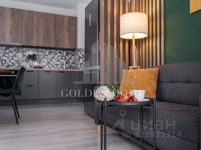 Квартира состоит трех комнат и кухни-гостиной и наполнена светом и воздухом благодаря расположению окон, выходящих на три стороны. Есть два балкона, которые расположены на разных уровнях, из одного из балконов открывается прекрасный вид на праздничные салюты, а на другом расположилась гардеробная.
