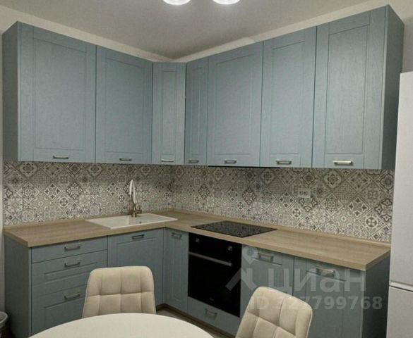 Имеется полностью меблированная кухня с встроенной электрической новой варочной поверхностью и новым холодильником, столом, стульями, комодом.