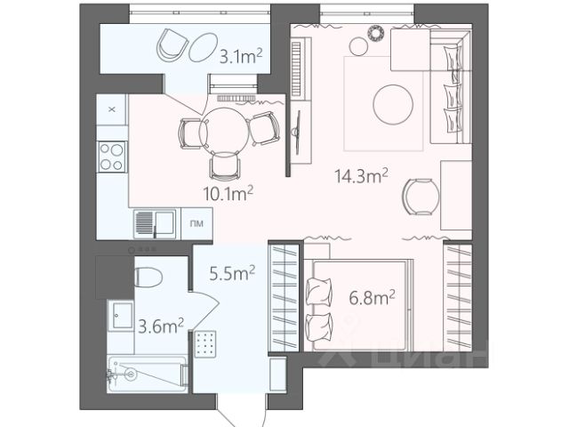Квартира обустроена всем необходимым для проживания 1 человека или пары.