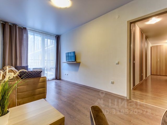 Уютная комната, правильной геометрической формы с выходом на огромную застекленную лоджию, с панорамным остеклением, откуда открываются бесподобные виды, где можно встречать рассветы и закаты с любимой чашечкой кофе, любуясь красотами Санкт-Петербурга.