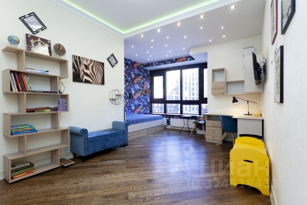 Уютная, с эстетичным дизайном спальня с гардеробной. Расположиться на уютной лоджии можно и в прохладную погоду, благодаря теплым полам. И с лоджии наслаждаться прекрасным видом на внутренний двор, имея возможность наблюдать за прогулкой Вашего ребенка.
