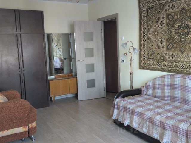 В основной комнате большой раскладной диван, вместительный шкаф, длинная тумба. Есть гладильная доска, утюг, пылесос. Выведены интернет-кабель и кабель телевизионной антенны. Установлен кондиционер - лучшее спасение в летнюю жару.