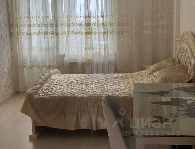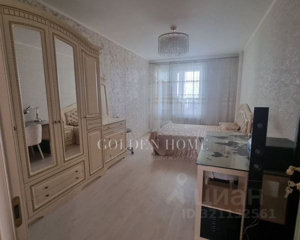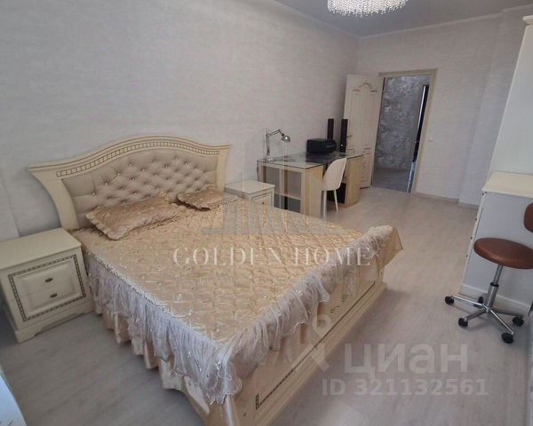 В спальне новая двуспальная кровать с ортопедическим матрасом и мягким изголовьем, туалетная консоль, ЖК телевизор (smart), трёхстворчатый шкаф, застеклённый балкон.