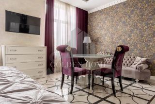 Детали завораживают! Уникальная лепнина в каждой комнате, хрустальные люстры и светильники, в отделке использованы 5 пород камня: Black marble stone, Calacatta Santorini кварцевый агломерат, Черный гранит black Galaxy, Blue Onyx, мрамор Calcite Blue.