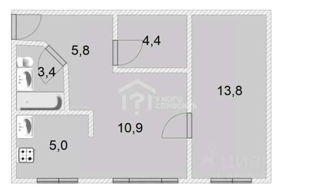 От года, 34 000 ₽ + 2 400 ₽ комм. платежи (без счётчиков), без комиссии, залог 34 000 ₽