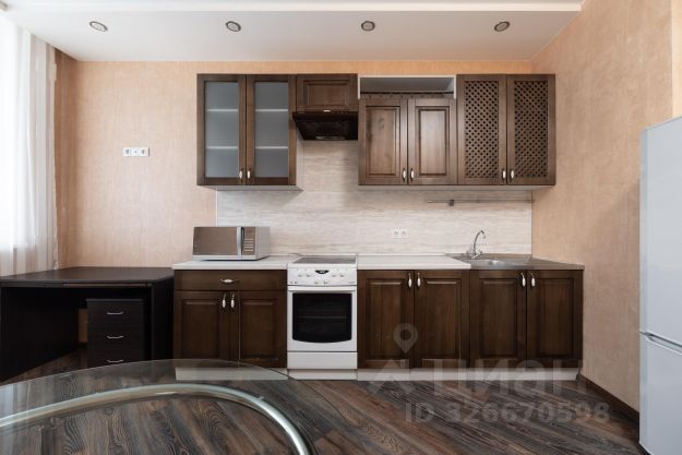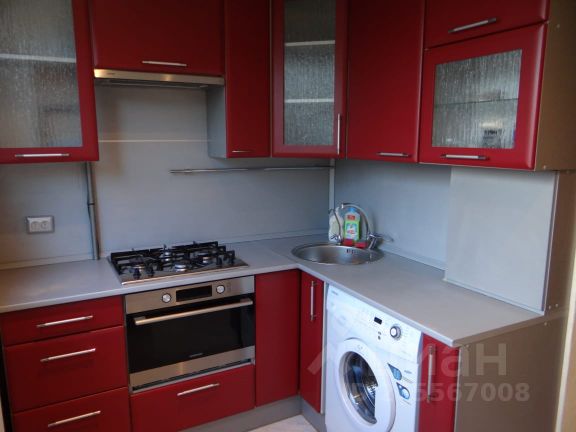 Стильная современная кухня с духовым шкафом, вытяжкой.