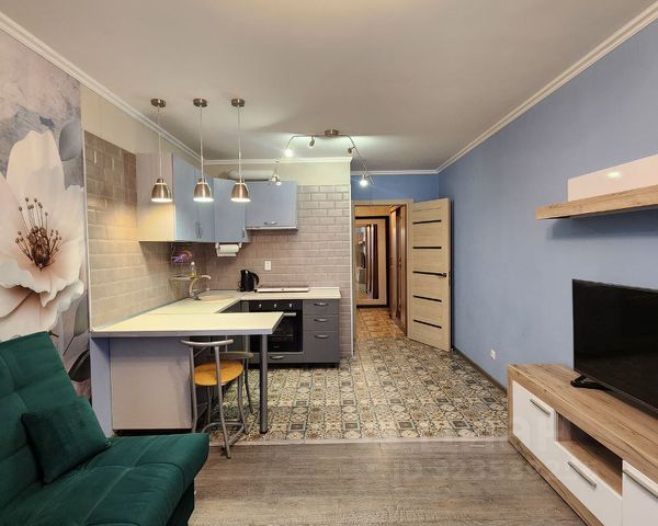 Сдаётся уютная однокомнатная квартира. Общая площадь составляет 41.7 кв. м, из которых 20.2 кв. м— это большая жилая комната, а кухня занимает 10.2 кв. м. с просторным балконом. Окна выходят на юго-запад. Квартира находится на 9 этаже 17-этажного дома.
