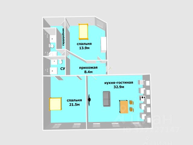Квартира в идеальном состоянии, готова к заезду.