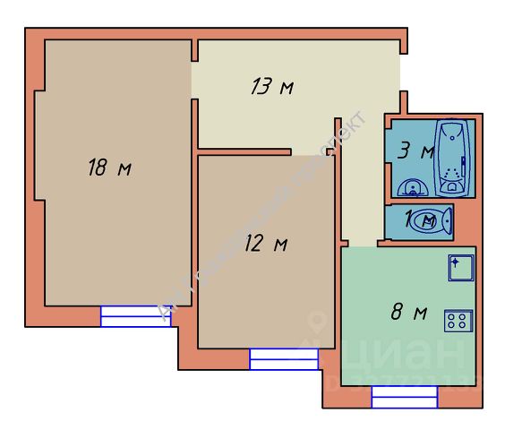 От года, 35 000 ₽ + 3 000 ₽ комм. платежи (без счётчиков), комиссия 80%, залог 35 000 ₽