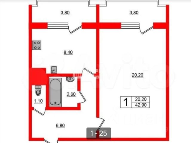 • Лоджия: 2,4 кв.м.