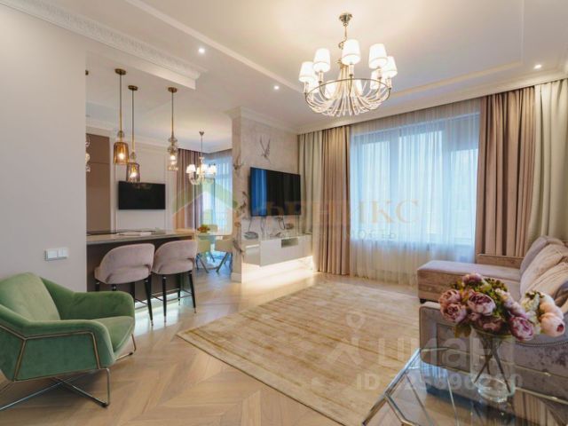 Квартира оформлена в современном дизайнерском стиле. В комнатах и на кухне есть вся необходимая мебель, техника, посуда, сушилка, гладилка. Для комфортного проживания установлена современная качественная техника: встроенный в остров холодильник и морозилка, посудомоечная и стиральная машины, а также телевизор, духовка, вытяжка, фильтр для питьевой воды, индукционная плита, микроволновка, чайник, гигиенический душ на унитазе, специализированная посуда для индукционки, столовые приборы и посуда. В ванной комнате можно насладиться расслабляющей ванной. Лоджия добавляет дополнительное пространство для отдыха. В квартире установлен интернет и интерактивное телевидение.