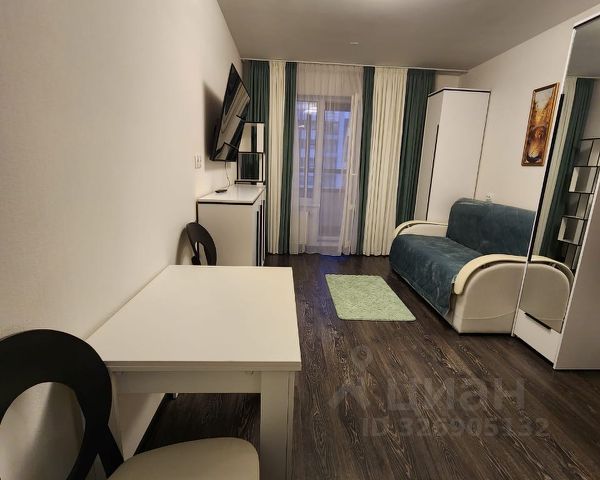 На длительный срок сдаётся квартира-студия в новом жилом комплексе "Солнечный город". В квартире есть всё необходимое для комфортного проживания: раскладной диван, модульная стенка для хранения вещей, обеденная зона с барной стойкой, кухонный гарнитур. Из техники: стиральная машина, ТВ, микроволновая печь, электрический чайник. Имеется застекленная просторная лоджия 4 м.кв. Дом расположен в зелёном микрорайоне с развитой инфраструктурой (магазины, аптеки и остановка общественного транспорта в пешей доступности). Рассмотрим одного-двух человек или семейную пару , без животных.Залог можно внести частями в два этапа. Квартира сдаётся через агентство.Оформляется договор найма.Комиссия 60% ----- Примечание: у собственника могут быть дополнительные пожелания к жильцам - обсудите их в чате или по телефону