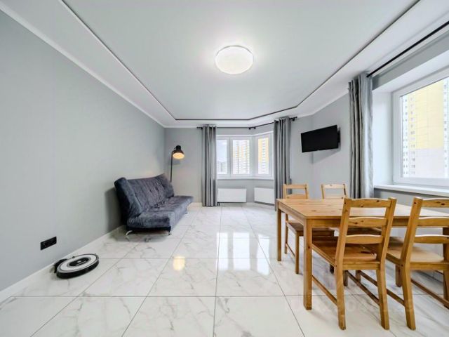 id:1096. Санкт-Петербург, метро "Комендантский проспект", Приморский р-н, пр. Королёва, дом 39, к 1, 2005 года постройки. Сдаётся в аренду 2х комнатная просторная светлая квартира со свежим ремонтом. Описание Светлая уютная квартира с прекрасным видом из окон. Расположена на 9-м этаже 10-ти этажного дома. Общая площадь - 56 кв.м. Изолированные комнаты - 18 и 12 кв.м. Кухня - 11,1 кв.м. В квартире произведен ремонт, всё полностью заменено, включая всю сантехнику, новая мебель, новая кухня. Квартира полностью оснащена техникой, новой мебелью. Кровать производство Германия, ортопедический матрац. На полу новый ламинат. КВАРТИРА ГОТОВА К СДАЧЕ. Без животных. Дети школьного возраста. Квартира сдаётся на длительный срок. Месторасположение Шикарная транспортная доступность. Пешком до станции метро Комендантский пр. - 17 мин, транспортом - 10 мин. Остановка напротив дома. Автобусы, троллейбусы регулярно ходят до метро Комендантский проспект, Пионерская. Дом расположен напротив современного парка отдыха Озеро Долгое, где вокруг ухоженного озера - дорожки для прогулок, велосипедные дорожки, детские и спортивные площадки, скамейки. Ухоженная территория, большое количество оборудованных детских площадок для разного возраста детей. Замечательная школа, детский сад. Магазины, супермаркеты, взрослая и детская современные поликлиники. ТЦ Пять озёр, Атомосфера, фитнес центр с бассейном. Удобный выезд на КАД. Коммунальные платежи оплачивает арендатор. Комиссия агента- 50% Звоните, покажем в удобное время для Вас! Номер объекта: #1/543568/14486 Сдается квартира на проспекте Королева в Санкт-Петербурге.