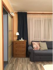 Уютная однокомнатная квартира сдается до конца апреля. Есть два полноценных спальных места, подойдет командированным сотрудникам. В квартире есть все необходимое для комфортного проживания - оборудованная кухня (свч, чайник, холодильник, варочная панель, духовка), стиральная машина, фен, утюг. Рассмотрим одного человека или пару, . ----- Примечание: у собственника могут быть дополнительные пожелания к жильцам - обсудите их в чате или по телефону