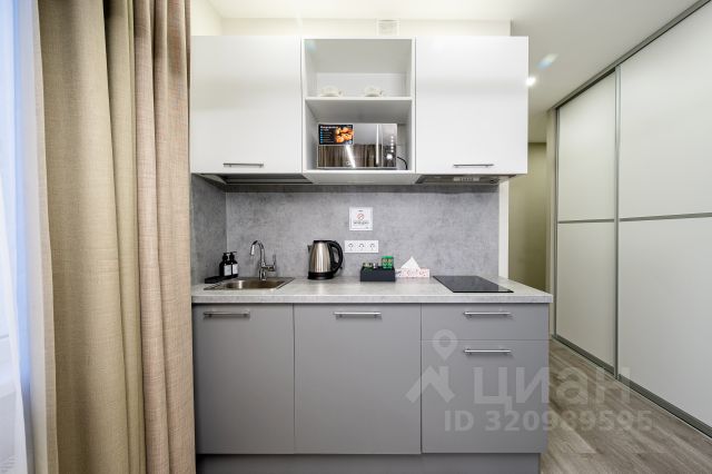 В кухне раскладной двуспальный диван, стол, 4 табуретки, большой полноценный холодильник максимальной вместительности и с морозилкой большой, плита, вытяжка, чайник, микроволновка.