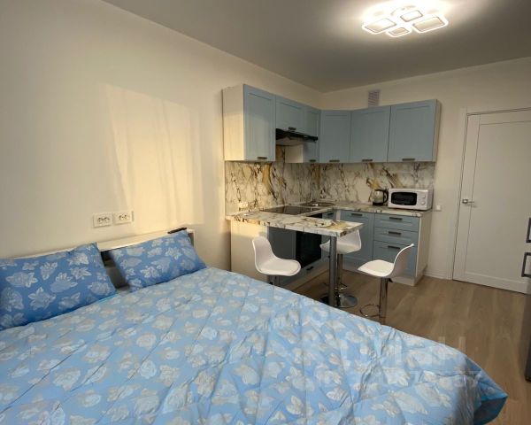 Сдаётся светлая квартира-студия с хорошим ремонтом, совмещённым санузлом и балконом в ЖК Полис на Комендантском. Её можно посмотреть когда Вам удобно: бронируете время, забираете ключи и спокойно осматриваете. Если всё понравится, договор подпишем онлайн и будем поддерживать Вас на всех этапах аренды. В квартире есть: - Кухонный гарнитур; - Телевизор; - Холодильник; - Стиральная машина; - Утюг; - Микроволновая печь; - Плита; - Чайник; - Кабельное/цифровое ТВ. Коммунальные услуги и счётчики оплачиваются отдельно. Окна выходят во двор, есть бесплатная парковка. До м. Комендантский проспект - 20 минут на общественном транспорте. Собственник готов заселить не более 3 взрослых жильцов с детьми, докупить мебель/технику и заключить договор с юридическим лицом. Можно согласовать заселение с домашним питомцем. Дом расположен в районе с развитой инфраструктурой, рядом находятся: - Изотовский сквер и Юнтоловский лесопарк. В пешей доступности школы и детские сады, продуктовые супермаркеты, цветочные салоны, гипермаркеты Лента и Леруа Мерлен, заправки, салоны красоты, аптеки, медицинские учреждения, фитнес-клубы, кафе. Сдаю квартиру-студию 20 м2 (квадратных метров) в Санкт-Петербурге.