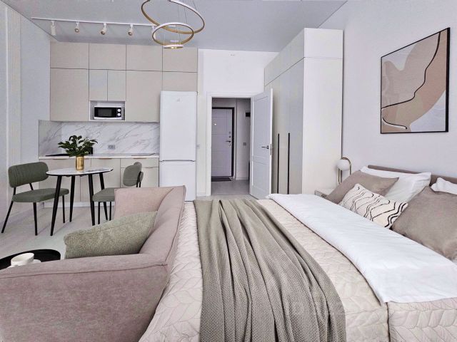 Сдается квартира-студия с дизайнерским ремонтом, новой мебелью, техникой, посудой и всем необходимым для комфортного проживания. Вся необходимая инфраструктура в шаговой доступности: школа, садик, К&Б, пятерочка, магнит, аптека, ПВЗ Озон, Яндекс. на долгое время. ----- Примечание: у собственника могут быть дополнительные пожелания к жильцам - обсудите их в чате или по телефону