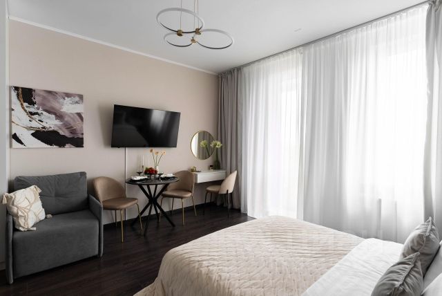 СОБСТВЕННИК!!! Сдается уютная квартира-студия в новом доме с ремонтом и новой мебелью. Минимальный срок проживания от 3-Х СУТОК. Актуальные цены в календаре и варьируются от времени года, выходных и праздников. Максимальное количество гостей 3, третье место за доп. плату. Квартира находится в ЖК "Чистое Небо" Приморского района. Станция м. "Комендантский проспект" - 15 минут на транспорте. Метро Комендантский проспект- прямая ветка до метро Адмиралтейская (центр города). 20 минут и Вы на Дворцовой площади. Для автомобилистов удобный выезд на ЗСД и КАД. Максимальный комфорт и чистота. Светлая и солнечная (в период белых ночей и удобства в ночное время квартира оборудована шторами блэкаут). Двор без машин, обустроен детскими и спортивными площадками. Открытая парковка для авто за территорией двора. ИНФРАСТРУКТУРА - развитая. В шаговой доступности имеются все сети магазинов Пятерочка, Перекресток, Магнит, Лента, Верный и т.д. Развитая сфера услуг, ресторанная сеть, кафе, бары. Что находится рядом? - Центр протонной терапии МИБС; - Детский лечебно-реабилитационный комплекс им. Алмазова В.А.; - Детский неврологический центр Доктрина; - ФГБУ НМИЦ им. В.А. Алмазова - Международный Центр Репродуктивной Медицины. А так же легко и быстро можно добраться к ЦПКиО им. Кирова на Елагином острове, парку 300-летия Санкт-Петербурга, парку аттракционов "Диво остров", аквапарку "Питерлэнд", стадиону "Газпром Арена", Финскому заливу. Для Вашего комфортного пребывания средства гигиены (шампунь, гель для душа, туалетная бумага, пена для бритья, зубная паста, жидкое мыло, средство для мытья посуды, стиральный порошок), вся необходимая посуда, тёплый пол в ванной комнате, а также напольная сушилка для белья и гладильная доска. В качестве комплимента для Вас чай, кофе, вода, соль, сахар и немного приятных мелочей. Генеральная уборка после каждого гостя. ВСЕГДА!!! чистое, глаженное постельное белье, комплект из 3-х полотенец. При заселении необходимо внести залог в размере 2000 рублей (возвращается после уборки) Заезд в 14:00 либо по договоренности, Выезд в 12:00 либо по договоренности. В квартире СТРОГО ЗАПРЕЩЕНО!!!: курить (в том числе на лоджии); проводить вечеринки; находиться с любыми животными. В объявлении все максимально описано. Если возникли вопросы, звоните, пишите. С удовольствием отвечу. При заселении требуется фото паспорта!!! Сдаю квартиру-студию на 3 дня на аллее Арцеуловская в Санкт-Петербурге.