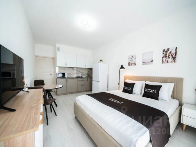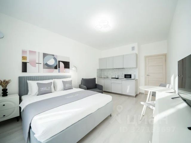 Студия для посуточной аренды расположена по адресу: Санкт-Петербург, проспект Авиаконструкторов, д. 69, ЖК Чистое небо. Современный жилой комплекс в спальном районе с удобной транспортной доступностью. Квартира подойдёт для гостей города, командированных и краткосрочного проживания. Дистанционное заселение и выезд 24/7. Для командированных предоставляются отчётные документы. Оснащение квартиры: - красивый вид - удобная кровать - раскладное кресло - кухня, полностью оборудованная для приготовления пищи, с обеденной зоной - постельное бельё и махровые полотенца из прачечной (используются профессиональные средства) - набор ванных принадлежностей На территории дома предусмотрена бесплатная придомовая парковка. Рядом: - остановки общественного транспорта - магазины и объекты повседневной инфраструктуры - метро Комендантский проспект — 15 минут на транспорте Стоимость проживания зависит от количества гостей, дня недели и периода бронирования. Актуальная цена указана в календаре Циан. Условия проживания: - заезд — после 15:00 - выезд — до 12:00 - ранний заезд и поздний выезд возможны по предварительному согласованию за дополнительную плату - курение и проведение мероприятий запрещены - проживание с домашними питомцами обсуждается индивидуально, за дополнительную плату - возвратный залог — 2 000 руб., возвращается при выезде после проверки квартиры при условии соблюдения правил проживания Снять квартиру-студию на 3 дня на проспекте Авиаконструкторов в Санкт-Петербурге.