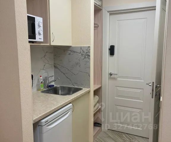 В кухонной зоне есть всё необходимое: мини-кухня, индукционная плита, электрический чайник, мультиварка, микроволновая печь, холодильник, стиральная машина, гладильная доска, утюг, сушилка, фен, набор полотенец, шампунь, гель для душа, жидкое мыло и стиральный порошок.