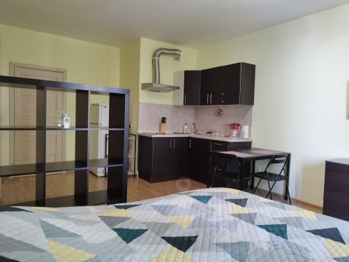- Новый холодильник, кухонный гарнитур, микроволновка, складной стол, два складных стула, плита стеклокерамика, мощная вытяжка с подсветкой, складной диван, современная стенка, шкаф купе.