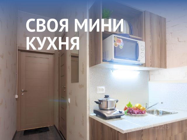 * ОБЩАЯ КУХНЯ оснащена всем необходимым для приготовления пищи - бытовой техникой и кухонными принадлежностями (смотрите описание ниже), кушаете Вы в своей студии.