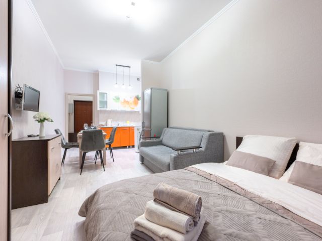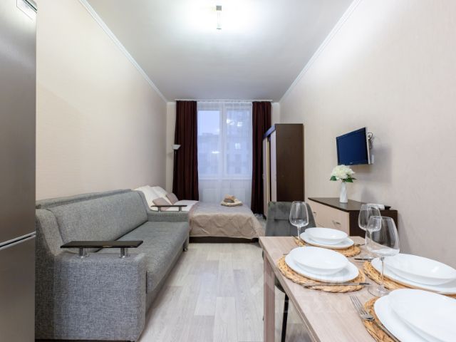 Жилая площадь квартиры 29,8 кв метров. Потолки 2,75 метра. Сделана полностью под себя, поэтому есть вся нужная техника и вещи. Большая зона для хранения вещей. Шкаф в коридоре в потолок, шкаф на балконе в потолок, а также 6 больших ящика в кровати. Всё это даёт визуальный простор. Кухня сделана в потолок и вмещает много вещей. Докупать ничего не придется. Есть пледики, много подушек, постельное белье, полотенца, сушилка, 2 складных стула на случай гостей. И много приятных мелочей! На кухне есть всё: посуда для запекания, новые сковородки и кастрюли, всякие прихватки, набор посуды, набор фужеров, стаканов и много всего др. Всё новое. Также доступно: WI-FI, мультиварка, блендер, духовка, вытяжка, большой холодильник LG, умный чайник и весы от Xiaomi, большая по загрузке стиральная машина с функцией "сушки" (1300 отжим). Всё новое. В кухонный кран встроен отдельный фильтр для питьевой воды. В общем, всё продумано! Сама квартира также новая, прожили тут всего 5 месяцев и были её первыми жильцами.
