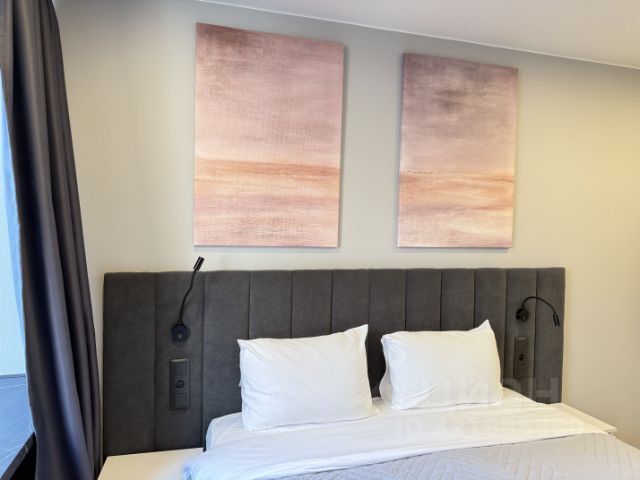 В квартире сделан дизайнерский ремонт, который создаёт атмосферу уюта и стиля. Здесь есть вся необходимая мебель в комнате, а также современная техника: кухня с варочной поверхностью и вытяжкой, СВЧ- печь, капсульная кофе-машина, чайник, умная колонка, кровать (1 двуспальная 160*200) с высококачественными ортопедическими матрасами, полный комплект текстиля, шторы, набор посуды, утюг, фен, гладильная доска, сушилка для белья, кондиционер, холодильник, телевизор и стиральная машина. Санузел совмещённый, оборудован душевой кабиной.