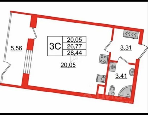 От года, 31 000 ₽ + 3 000 ₽ комм. платежи (без счётчиков), без комиссии, залог 31 000 ₽