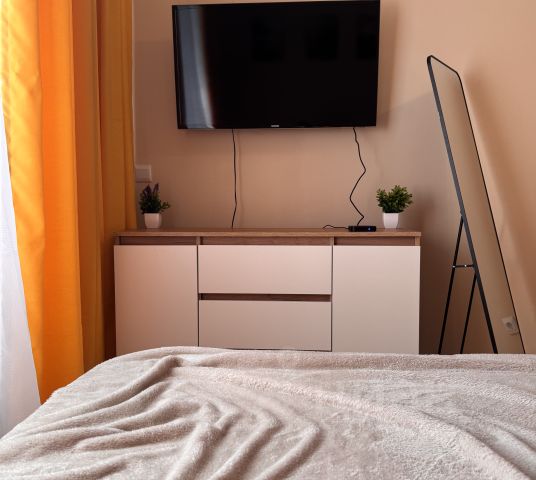 Квартира полностью готова к проживанию, имеется новый комплект постельного белья и полотенец, две подушки и всесезонное одеяло, вешалки для одежды, столовые и кухонные приборы, посуда, кастрюли, сковородки, салатники, стаканы, бокалы для пива, вина, шампанского, стопки, утюг, гладильная доска, напольная сушилка для одежды, беспроводной пылесос, чайник
