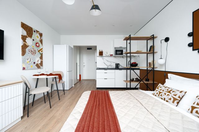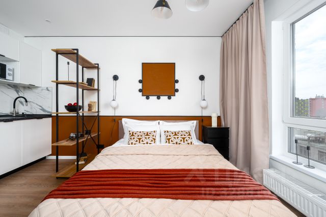 Сдаётся светлая, полностью укомплектованная студия с современным ремонтом, с окнами, выходящими во двор, и балконом. Идеальный вариант для одного человека или пары без домашних животных для комфортного проживания в городе.