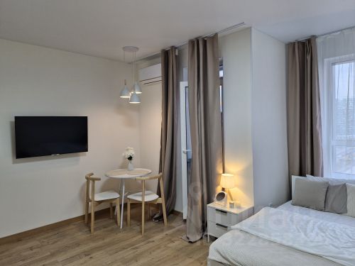 —> В апартаментах создана комфортная и уютная атмосфера, а планировка продумана таким образом, что есть место и для отдыха, и для работы.