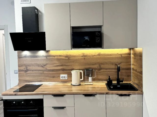 Техника: Холодильник, СВЧ, духовой шкаф + варочная панель, стиральная и посудомоечная машины, ТВ со Smart TV.