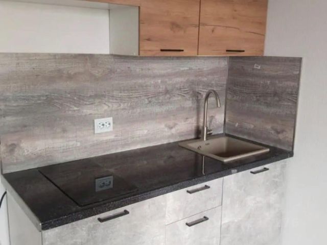 В одном из кухонных шкафчиков можно будет найти столовые приборы,сушилку для посуды и минимальный набор посуды.