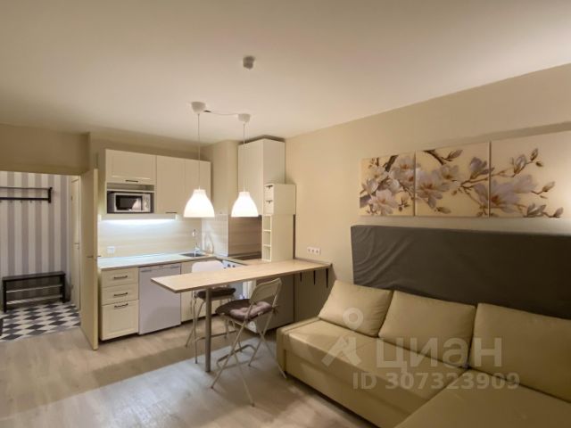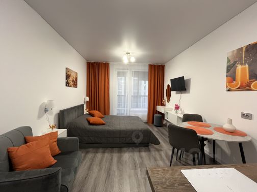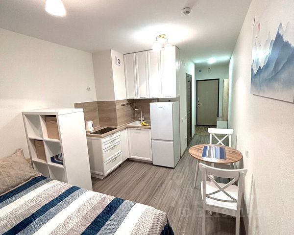 Сдаем на длительный срок светлую студию в новом кирпично-монолитном доме (дом сдан год назад). К ремонту и меблировке подошли с душой, постаравшись создать уют и максимально оптимизировать внутреннее пространство: функциональная встроенная кухня с варочной панелью, холодильник, стиральная машина, сделанная на заказ встроенная гардеробная в прихожей (очень вместительная и выгодно отличающаяся от конкурентных вариантов, при просмотре оцените), двуспальная кровать с ортопедическим матрасом, прочая необходимая мебель, шторы блэкаут, ламинат на полу, плитка в санузле - все новое. Обстановку и компоновку продумали до мелочей, не экономя на деталях и постаравшись сделать ваше проживание комфортным. Только в хорошие руки :)