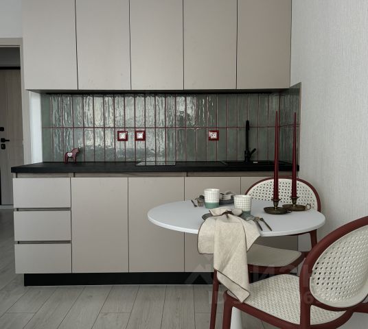 Есть вся необходимая техника: варочная поверхность и вытяжка, фильтр для питьевой воды, большой вместительный холодильник, микроволновка, электрочайник, кофемашина, вся необходимая посуда и инвентарь.