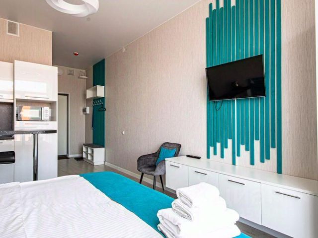 - В местах отдыха: кондиционер, постельное белье на каждого гостя, ЖК телевизор со Smart TV, высокоскоростной Wi-Fi в номере бесплатно, зеркало в полный рост, шторы блэкаут.