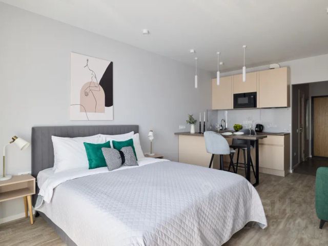 Студия оборудована всем необходимым для комфортного проживания: удобная двуспальная кровать, кухня с варочной поверхностью и полным комплектом посуды для готовки и сервировки стола, микроволновая печь, электрический чайник, холодильник, стиральная машина, телевизор (не smart), фен, утюг, гладильная доска. В квартире есть Интернет (WiFi). На кухне всегда есть мелочи вроде чая, сахара, соли, растительного масла. Также предоставляется постельное белье и полотенца, гель для душа и шампунь.