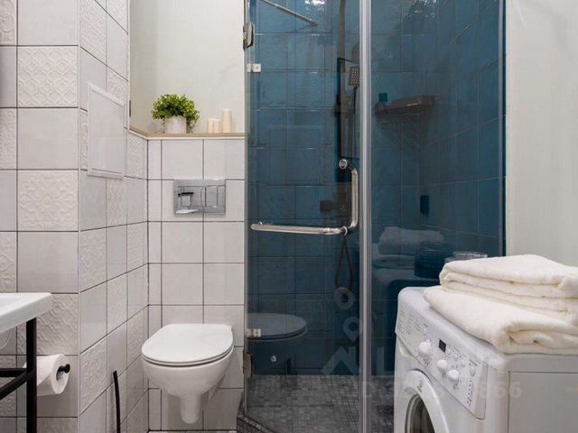 - В ванной комнате: душ,стиральная машина, фен, утюг и базовый набор гигиенических средств, полотенца для ног, рук и тела на каждого гостя.