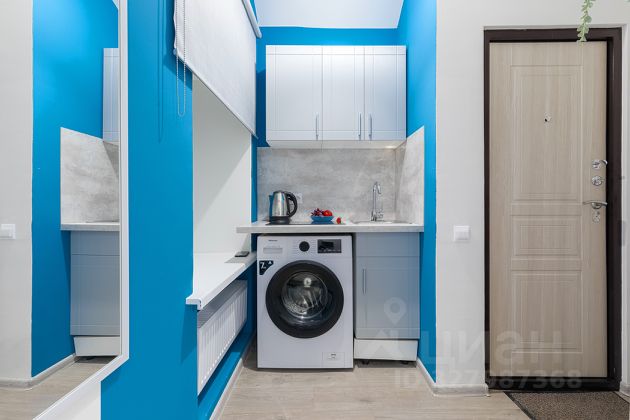 Общая площадь 19 кв м с санузлом и душем, обеденной и кухонной зоной.