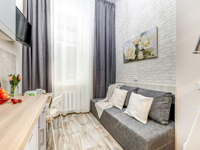 Одна из центральных и оживленных улиц города. Студии только что отремонтированы с участием дизайнера, обставлена и снабжены всем необходимым. Старинный дом 1906 года постройки. Характерная для того периода времени архитектура с большими окнами, высокими потолками и просторными парадными. Окна выходят на улицу. Мебель простая и удобная, зонирование помещения тщательно продумано. В квартире всегда проводится качественная генеральная уборка после каждого гостя, постояльцев ждет стерильно чистое пространство.