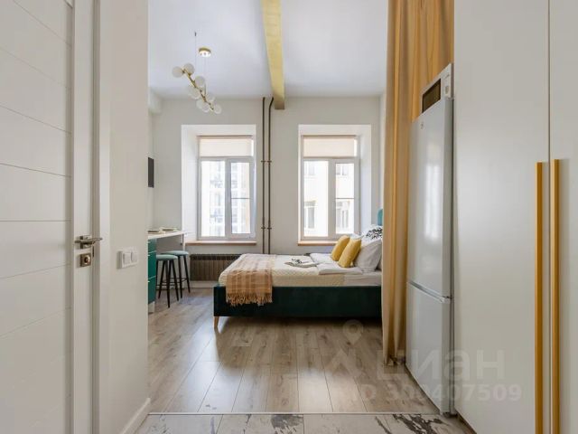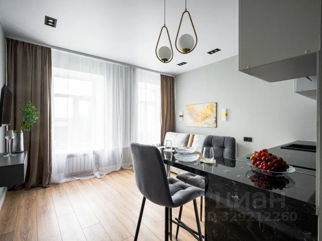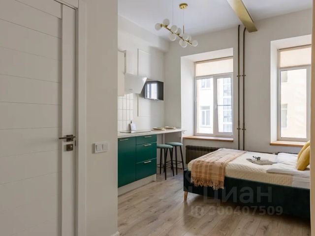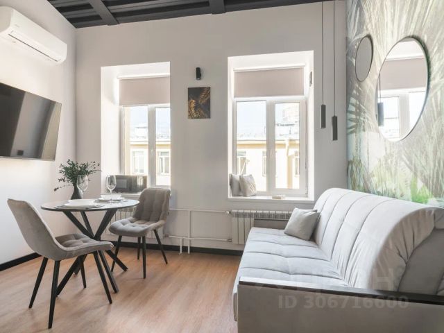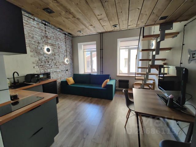 Двухуровневая квартира премиум класса с дизайнерским ремонтом, оборудованной кухней и спальной зоной на втором этаже. Расположена в Адмиралтейском районе Санкт-Петербурга.