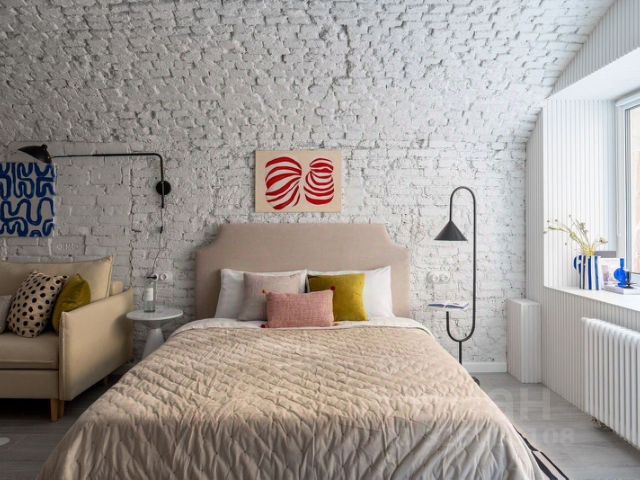 Так как высота потолка 3,7 м., было принято решение, расположить спальное место в мезонине (на втором уровне помещения), вход туда осуществляется по лестнице. Квартира может быть недостаточно безопасна для маленьких детей. Квартира оснащена всем необходимым для комфортного проживания двух взрослых человек: постельное бельё, полотенца, туалетные принадлежности, фен, утюг, гладильная доска, сушилка для белья, зонт, посуда, маленький холодильник, электроплита, чайник, wi-fi.