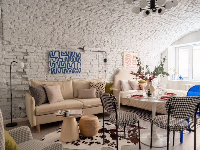Доходный дом купца Е.П. Карелина 1843 года постройки. Архитекторы Реймерс Я.И. и Бек Х.Х. Постройка состоит из основного здания, выходящего на Вознесенский проспект, и ряда дворовых флигелей. В одном из этих флигелей расположена наша Студия. В здании проведена полная реконструкция, заменены все коммуникации, кровля, надстроены два этажа, в порядок приведён двор, вставлены очень красивые окна. В квартире выполнен ремонт, который порадует даже искушенных ценителей красивых интерьеров. В ванной комнате выполнено авторское граффити. В квартире абсолютно все новое, сохранены лишь кирпичные стены и волнистый потолок 1843 года. Чтобы сохранить этот потолок, мы отказались от верхнего освещения и сделали, очень интересный, многоуровневый свет. Всё остальное в интерьере ультрасовременное. Отдельное внимание стоит уделить сантехнике, в душевой кабине в потолок встроен тропический душ. Должны предупредить, что высота душевой кабины составляет 190 см., просим обратить внимание высоких людей, может быть не очень удобно.