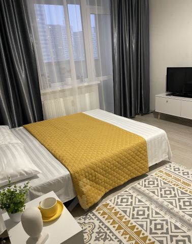 Новая квартира с большой лоджией в доме комфорт класса с дизайнерским ремонтом и шторами БЛЭКАУТ/рулонные шторы установлены,которые не пропускают солнечный свет.