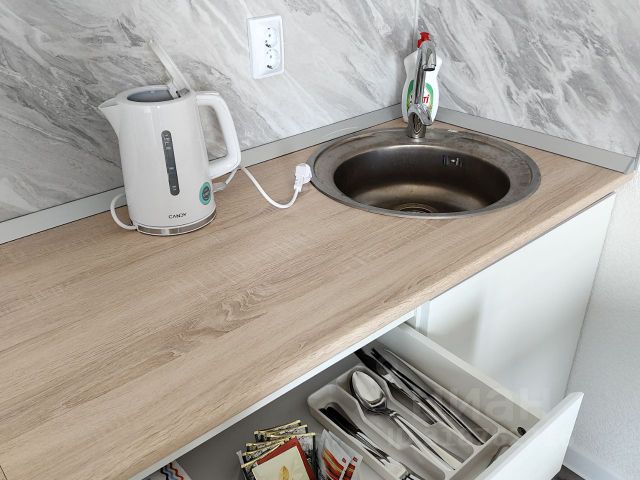 А так же стиральная машина, фен, полотенца, утюг, гладильная доска, теплый пол в кухонной зоне и ванной комнате.